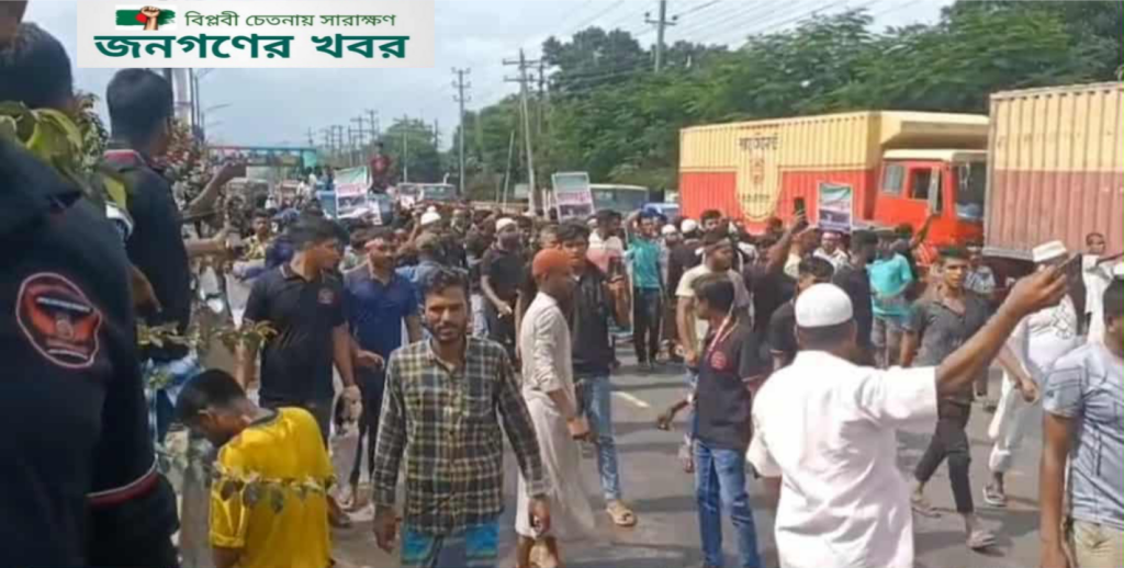 কাভার্ডভ্যান চালক শামীম হত্যার আসামিদের গ্রেপ্তারের দাবিতে মহাসড়ক অবরোধ