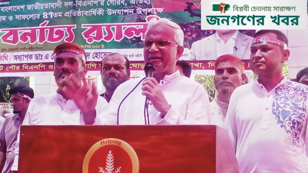 বুধবার (৩ সেপ্টেম্বর) দুপুর ১ টার দিকে বিএনপির ৪৭তম প্রতিষ্ঠা বার্ষিকী উপলক্ষে দিনাজপুরের ঘোড়াঘাট পৌর বিএনপি ও অঙ্গ সহযোগী সংগঠনের আয়োজনে সভায় প্রধান অতিথির বক্তব্যে এসব কথা বলেন বিএনপির স্থায়ী কমিটির সদস্য ডা. এজেডএম জাহিদ হোসেন।