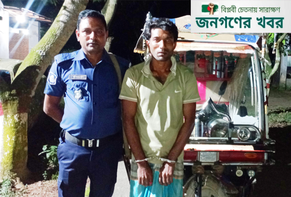 উদ্ধার হওয়া ইজিবাইকসহ গ্রেপ্তার শফিউল ইসলাম