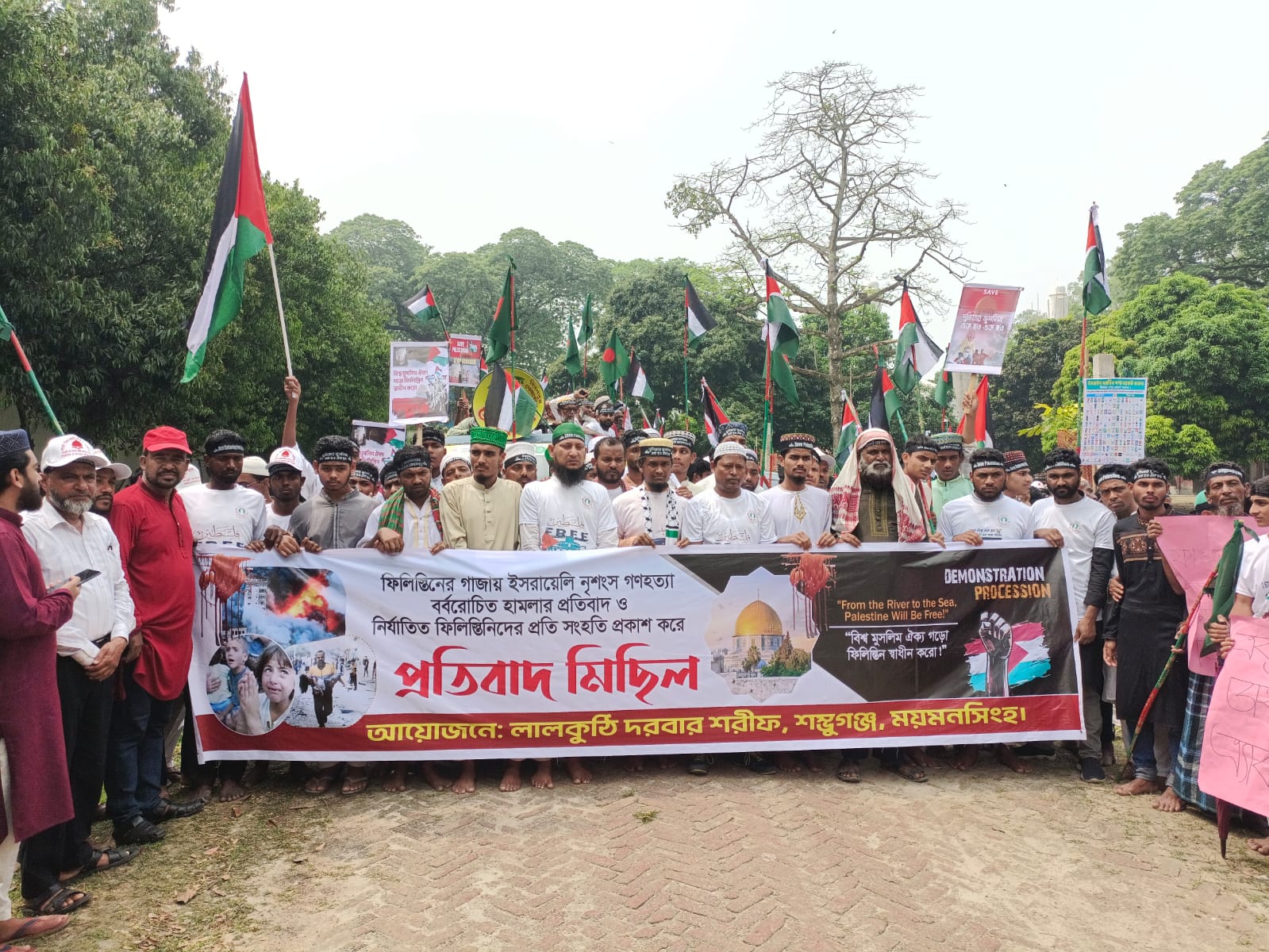 ফিলিস্তিনে গণহত্যা ও ধ্বংসযজ্ঞের প্রতিবাদে ময়মনসিংহে লালকুঠি দরবার শরীফের বিক্ষোভ