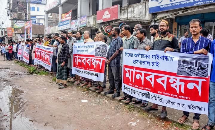 চীনের হাসপাতালটি গাইবান্ধায় প্রতিষ্ঠার দাবিতে এক কিলোমিটারব্যাপী মানববন্ধন